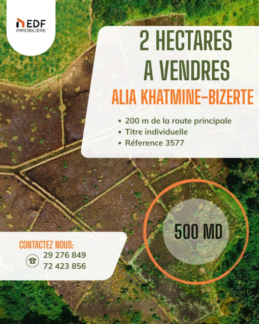 Réf 4084 : EDF immobilière met en vente un fond de commerce à Jarzouna Bizerte Lavage idéal pour un investissement Superficie : 80m² Prix de vente : 40 md négociable Pour plus d'informations merci de nous contacter sur 72 423 856 // 29 276 849 // complexe commercial Bizerte centre Bureau N°58