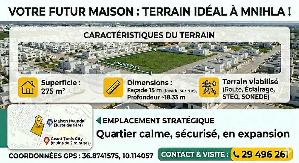 La Maison de l’Immobilier vous propose à la location un immeuble moderne idéalement situé en plein cœur de Charguia 2. L’immeuble est réparti comme suit : • Rez-de-chaussée : 342 m² • 1er étage : 336 m² • 2ᵉ étage : 336 m² • 3ᵉ étage : 336 m² • 4ᵉ étage : 336 m² • Local machinerie : 59 m² Superficie totale Hors Sous-Sol : 1 745 m² Chaque niveau, du rez-de-chaussée au 4ᵉ étage, comprend 8 à 9 pièces, deux blocs sanitaires ainsi qu’un local technique. Le sous-sol abrite 37 places de parking. L’immeuble est équipé de la climatisation, d’un ascenseur et du câblage réseau.