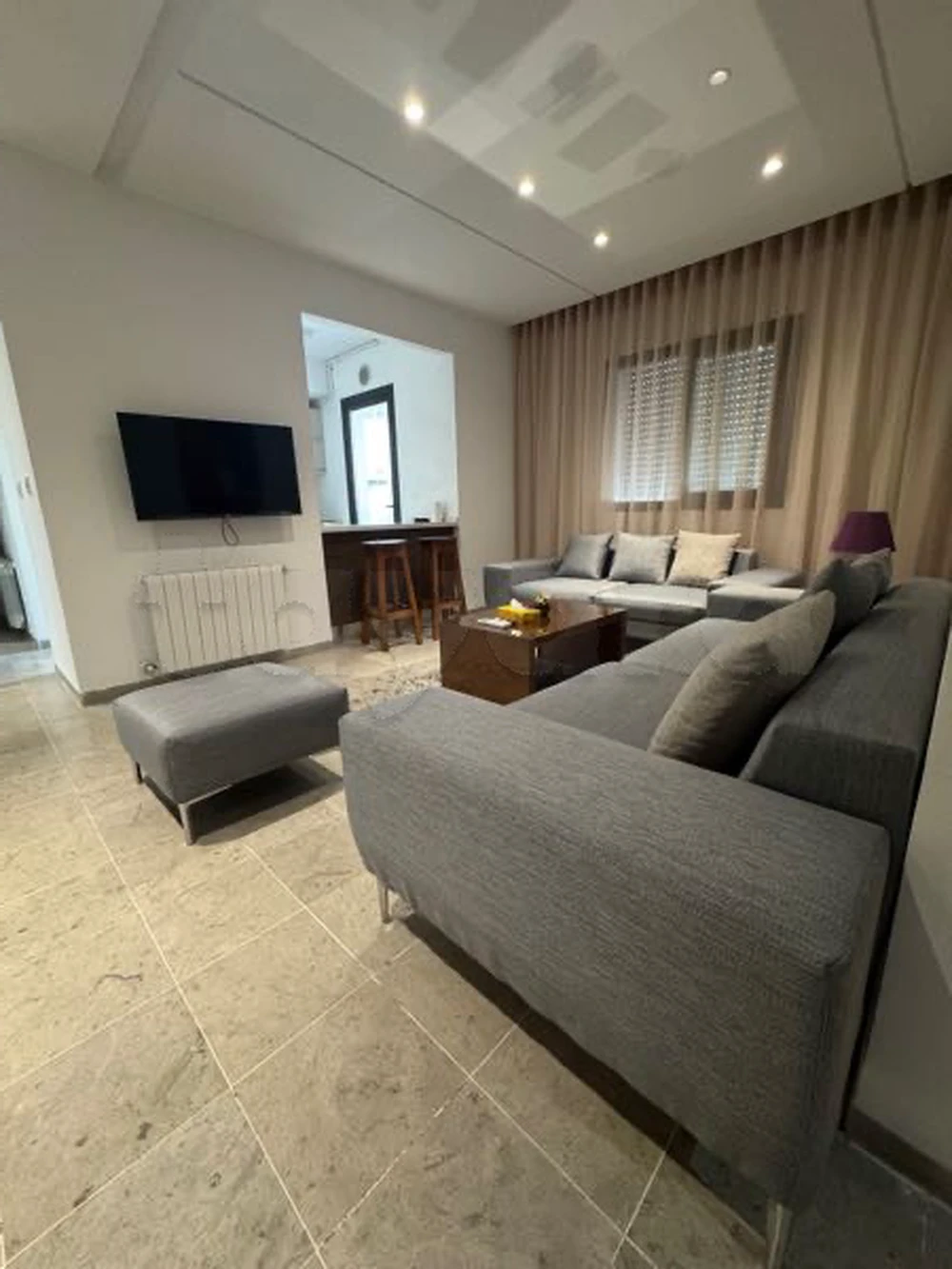 À louer pour courte durée, appartement entièrement meublé situé dans une résidence calme et sécurisée à Laouina, Tunis. Idéal pour voyageurs, professionnels ou familles souhaitant un séjour confortable Équipements : Wi‑Fi haut débit, Smart TV, climatisation, cuisine équipée, mobilier moderne شقة مفروشة بالكامل في إقامة هادئة ومؤمنة. المرافق: واي فاي، تلفاز ذكي، تكييف، مطبخ مجهز. قريبة من المحلات ووسائل النقل.